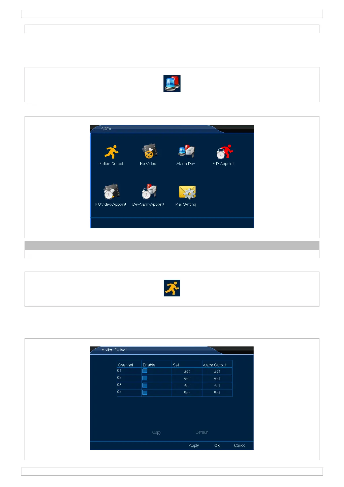 1. Faça clic com o botão esquerdo no ícone Detecção de Movimento para aceder ao menu.