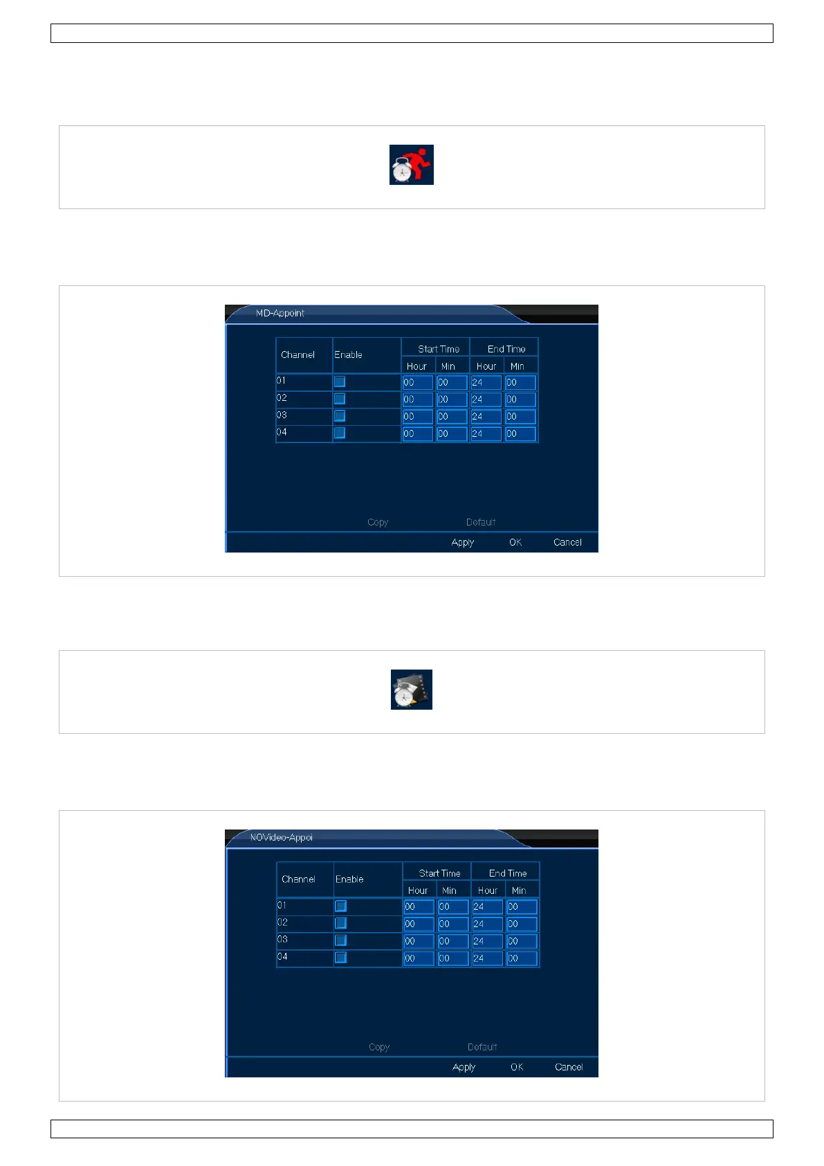O menu Programar-SEMVídeo permite-lhe fazer a configuração do alarme desligado. Proceda da seguinte