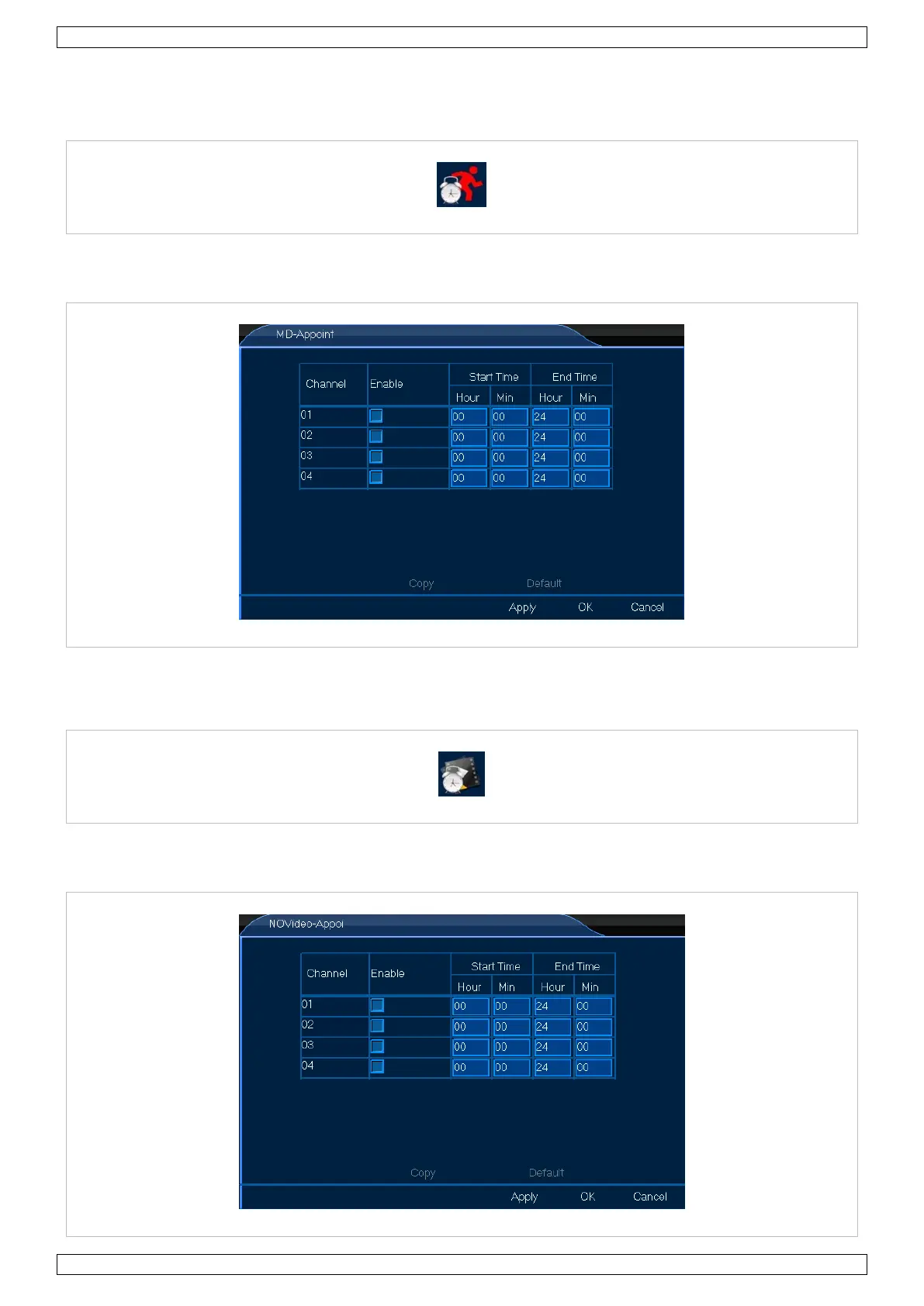 The MD-Appoint menu allows you to set the motion detection schedule. Proceed as follows: