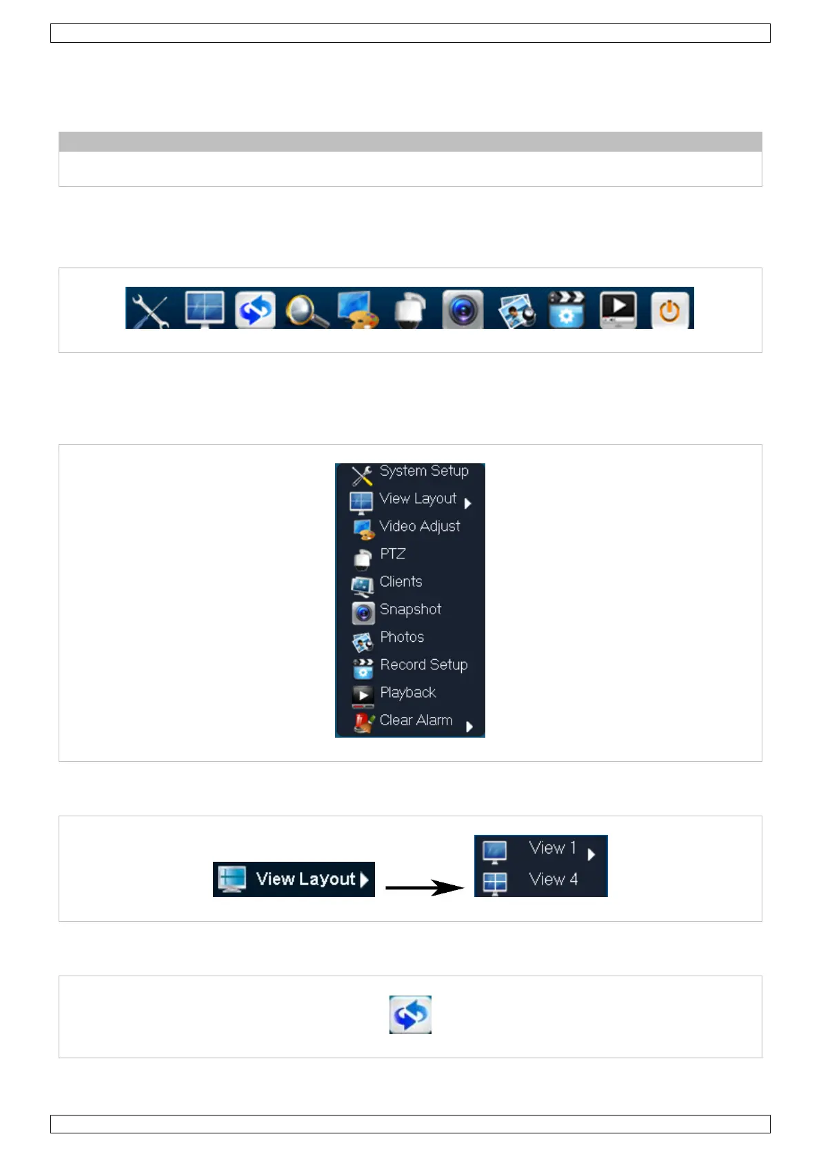 Layout, Sequence, Zoom, Video Adjust, PTZ, Snapshot, Photos, Record Setup, Playback, Quit.