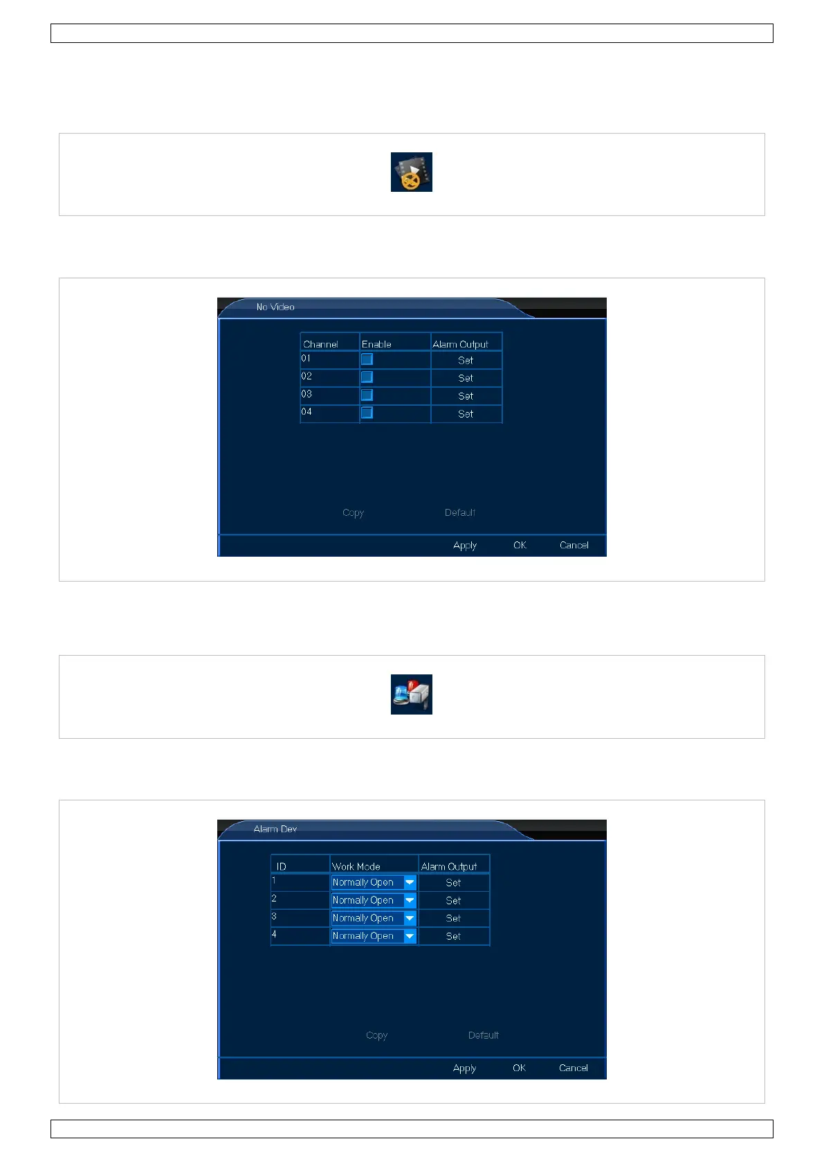 In het menu No Video kunt u de alarmuitgang instellen. Ga als volgt te werk: