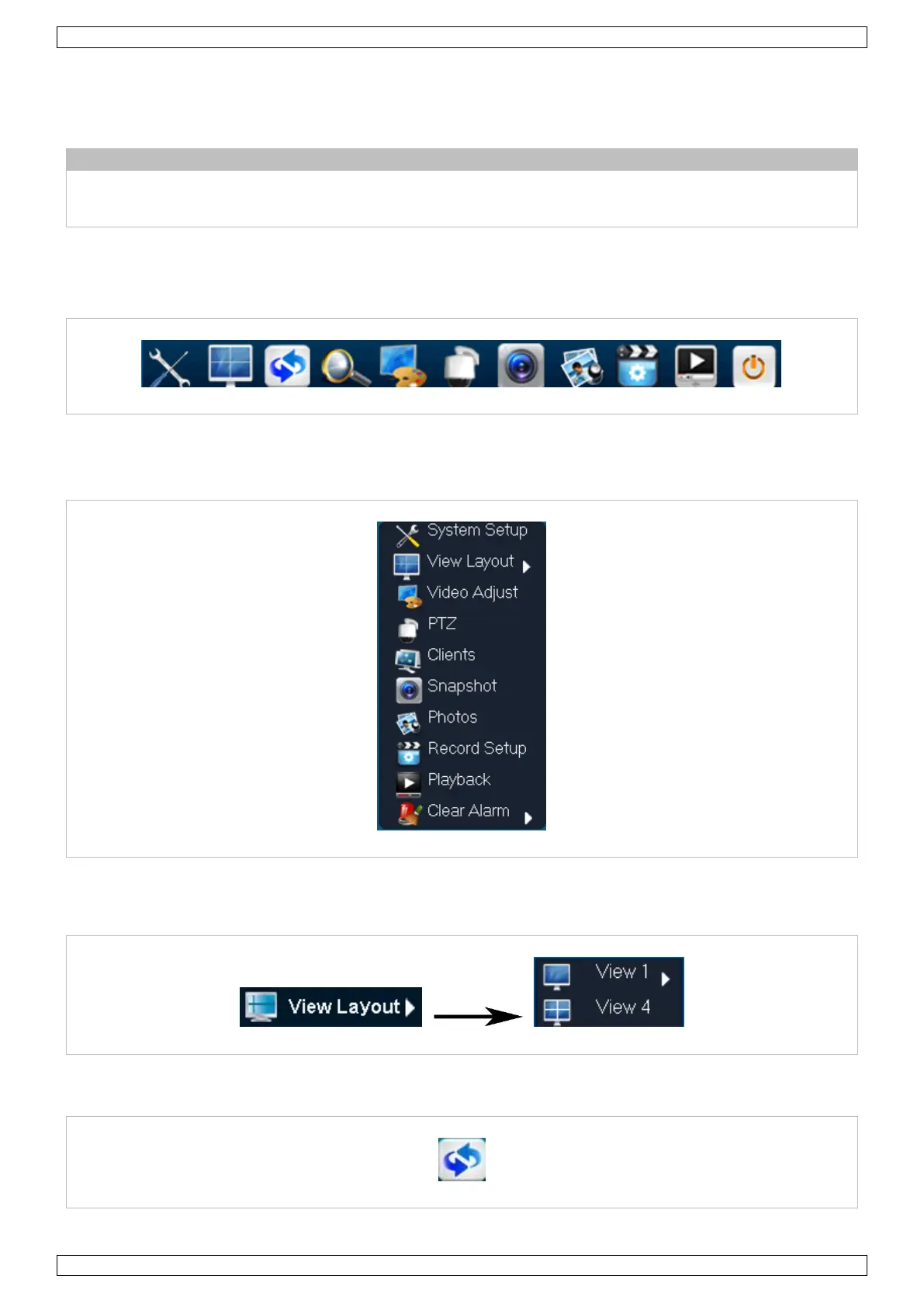 Layout, Sequence, Zoom, Video Adjust, PTZ, Snapshot, Photos, Record Setup, Playback, Quit.