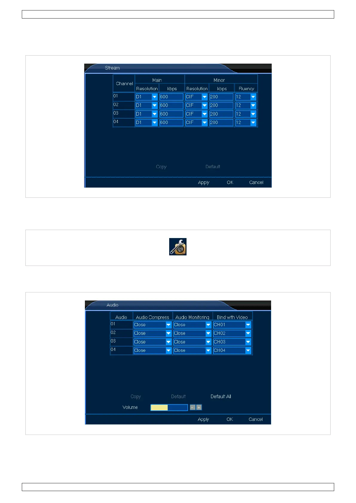 1. Cliquer avec le bouton gauche de la souris sur l'icône Audio pour accéder au menu.