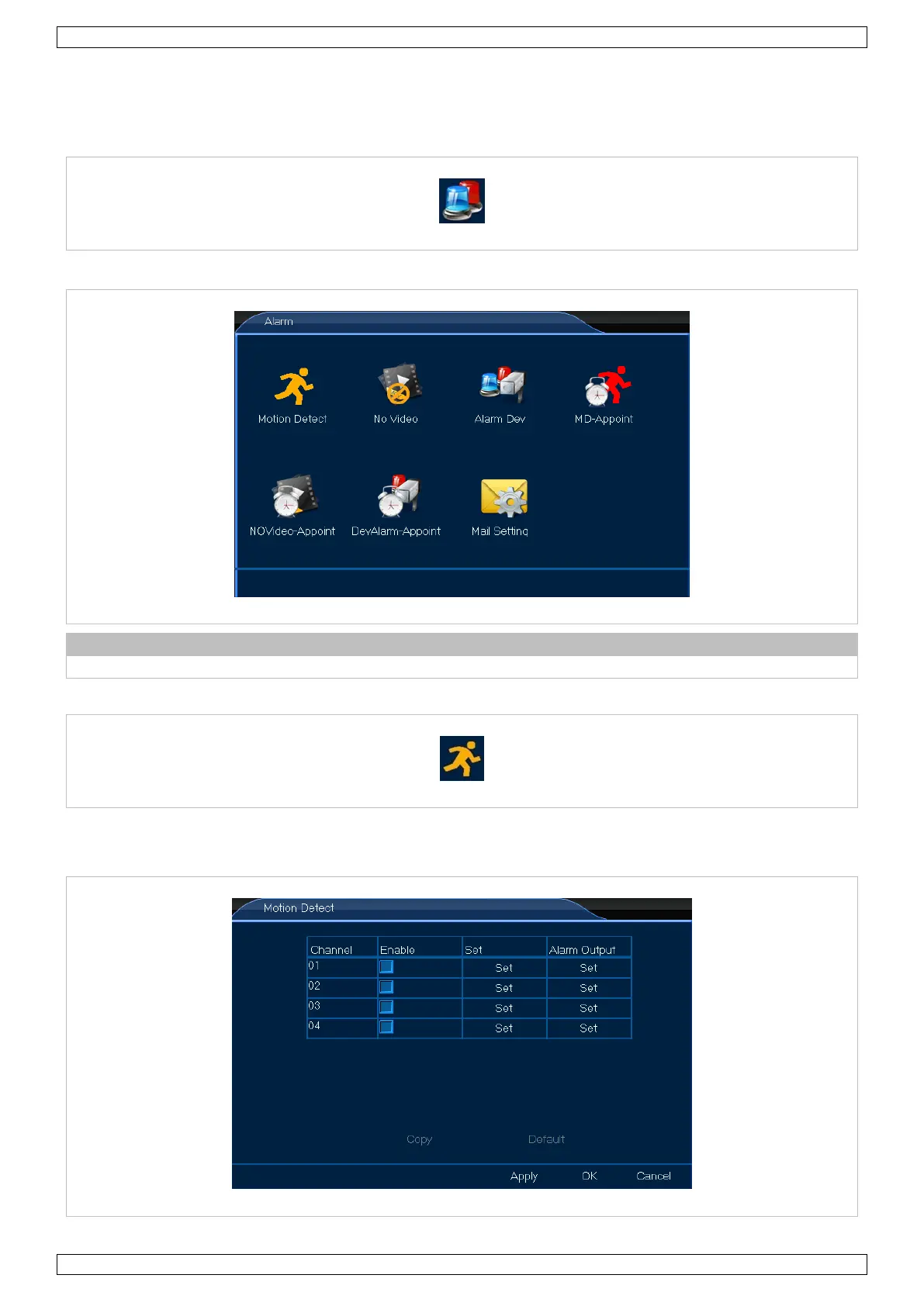 Le menu Motion Detect vous permet de définir la zone de détection. Procéder comme suit :