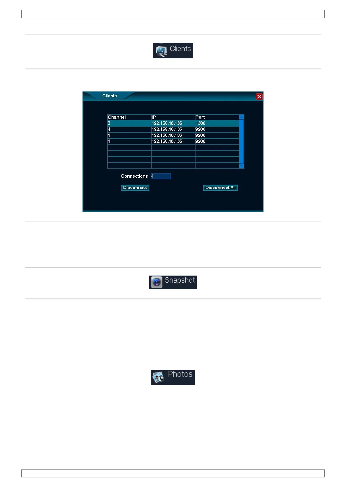 La función Clientes lista todos los anfitriones remotos conectados a la DVR.