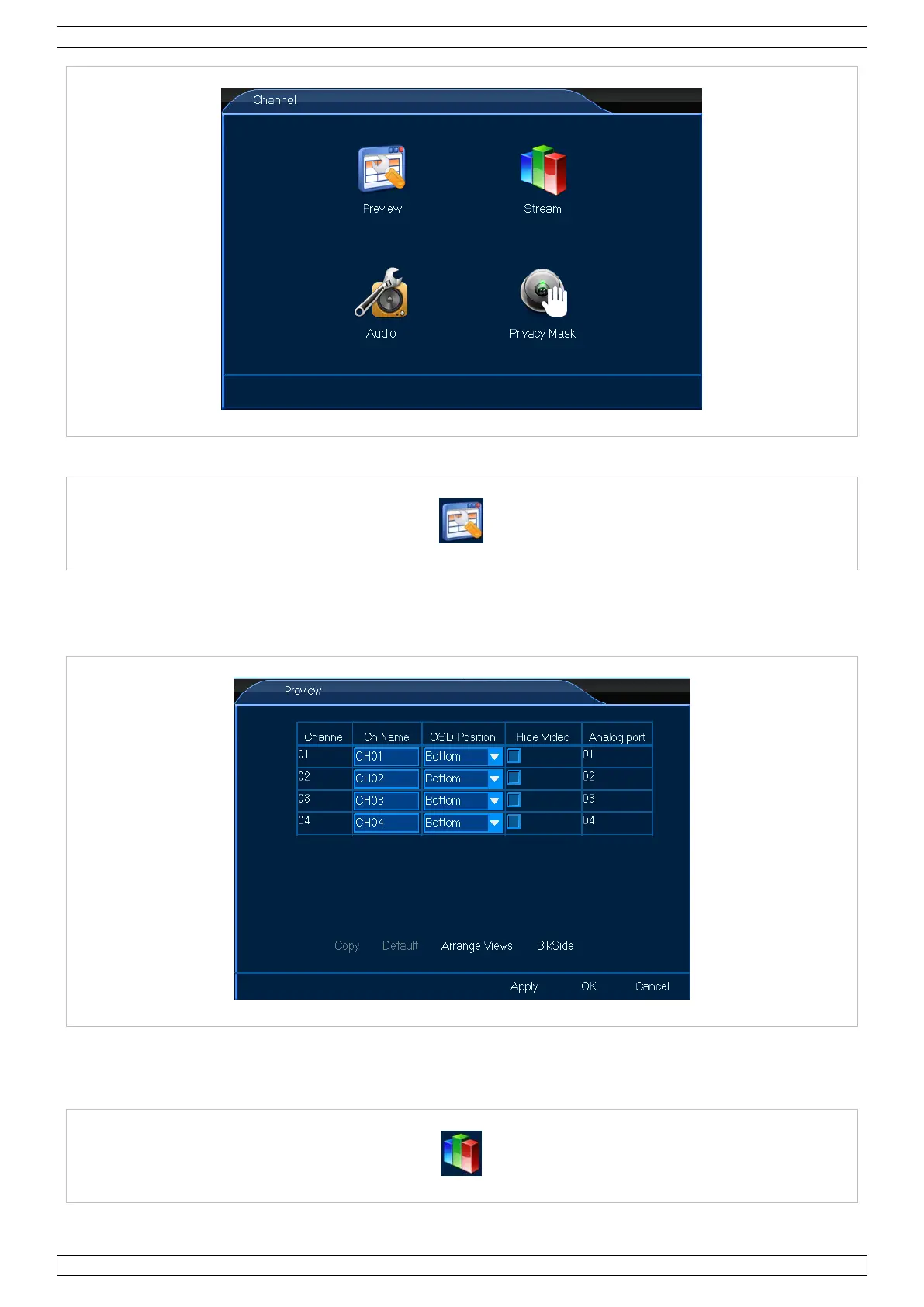 El menú Vista Previa le permite ajustar todas las configuraciones generales en la pantalla tales como Nombre