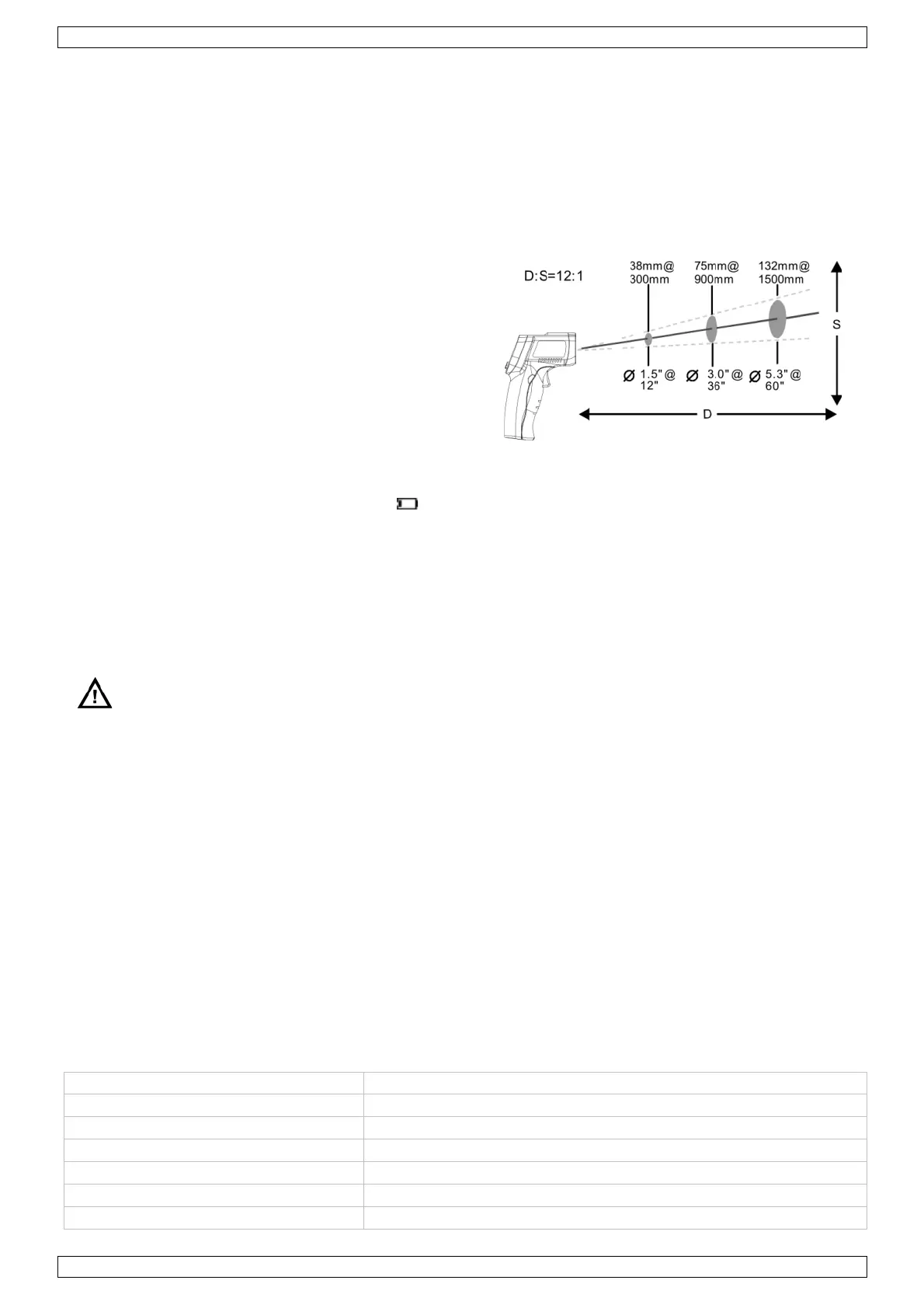 • The device's distance-to-spot ratio is 12:1.