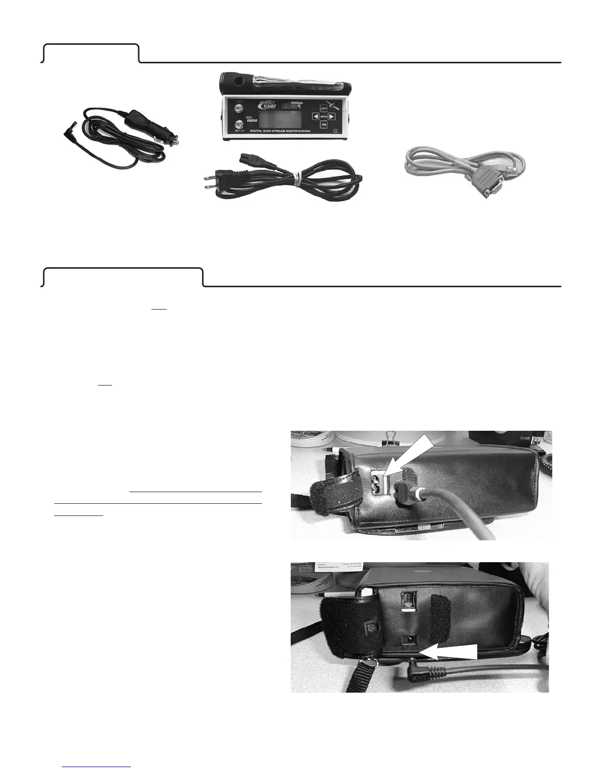 Your BirDog is supplied with this manual, the meter, a protective case, an auto charge cord, an A/C charge