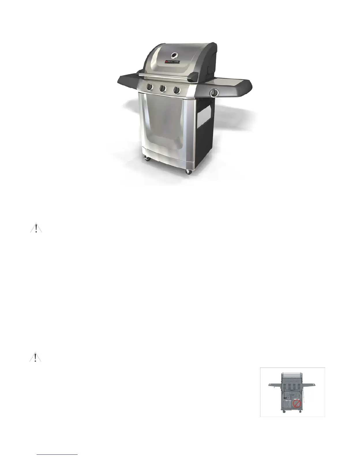 Never store a spare propane cylinder in the vicinity of this grill, or in the vicinity of another