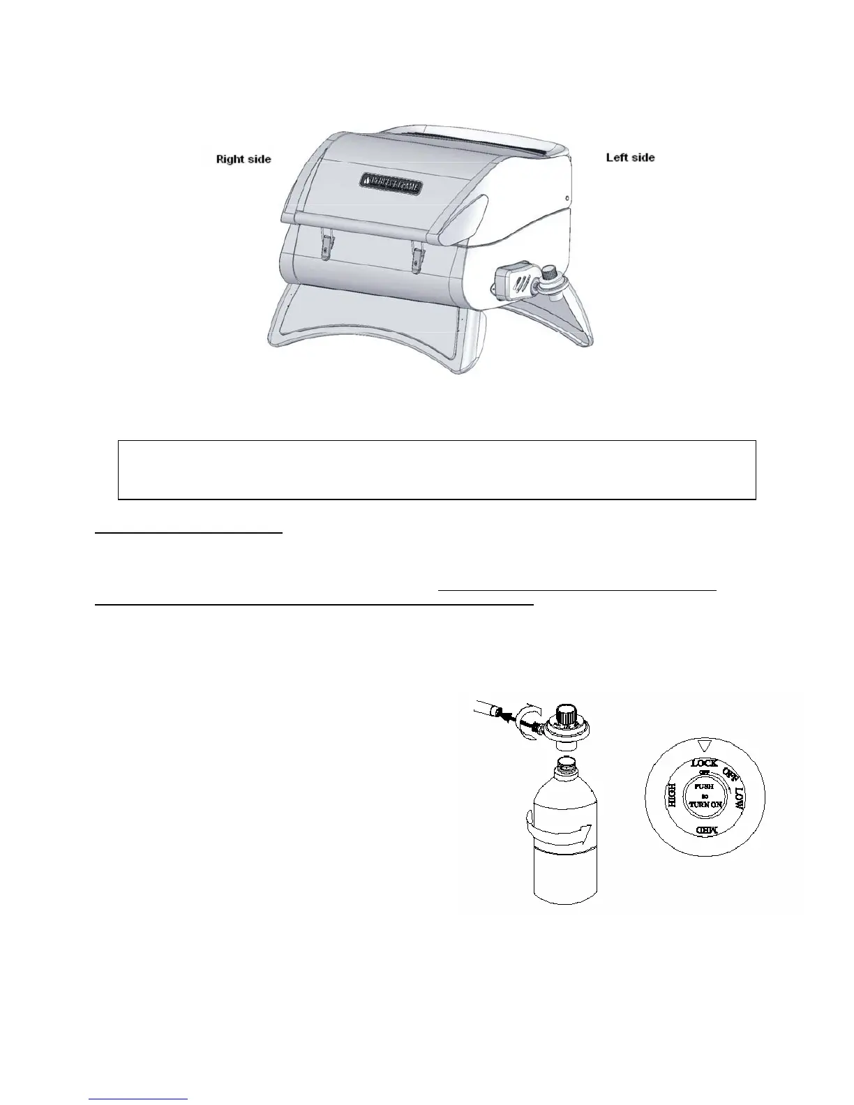 and burner ports. Connect regulator valve and hand-tighten firmly. Disconnect the propane cylinder from the