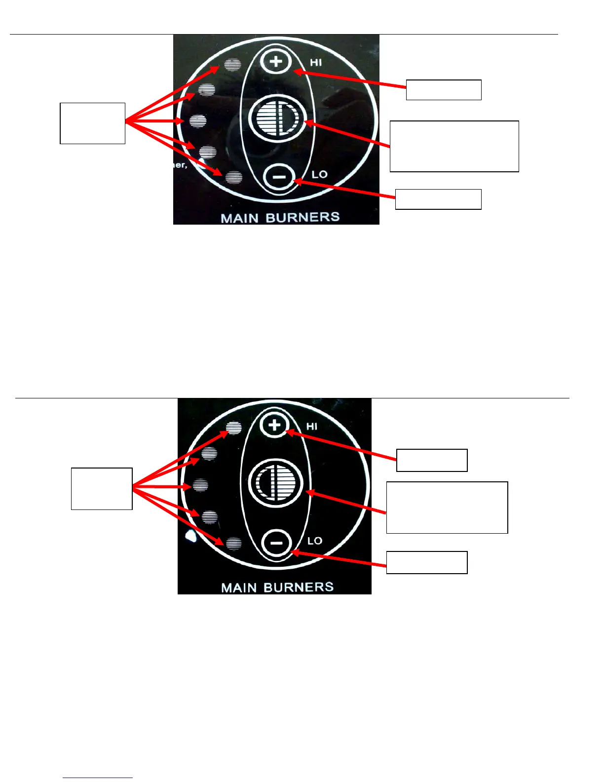 • Activation Button (MAIN BURNERS 1-2) controls the 2 main burners at the left side of the firebox. The main