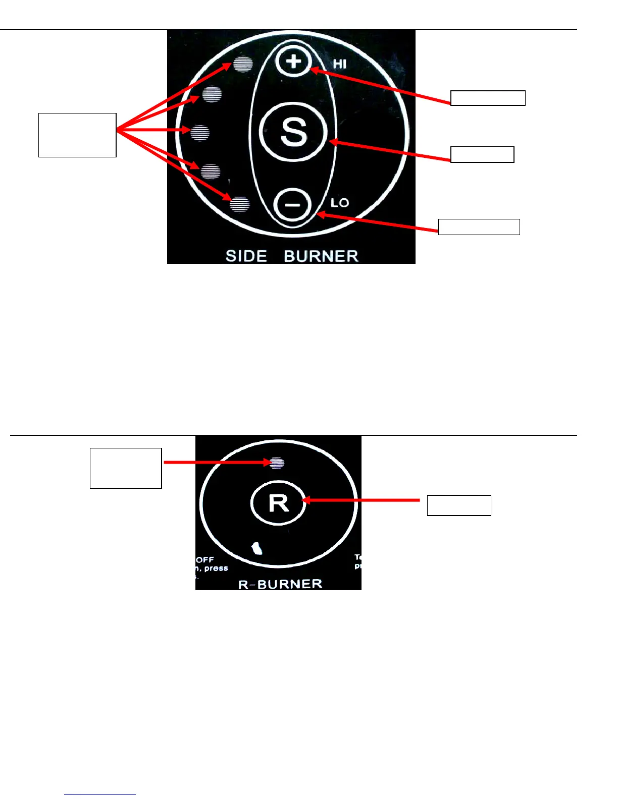 • The rear burner can be turned on by pressing the “R” Button (activation button for rear burner) for 3 seconds; the