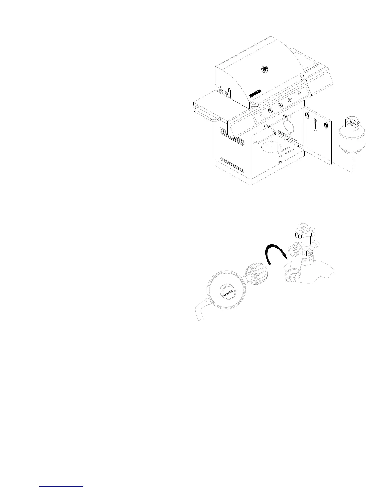 Attach the liquid propane gas cylinder to the hole on bottom panel.