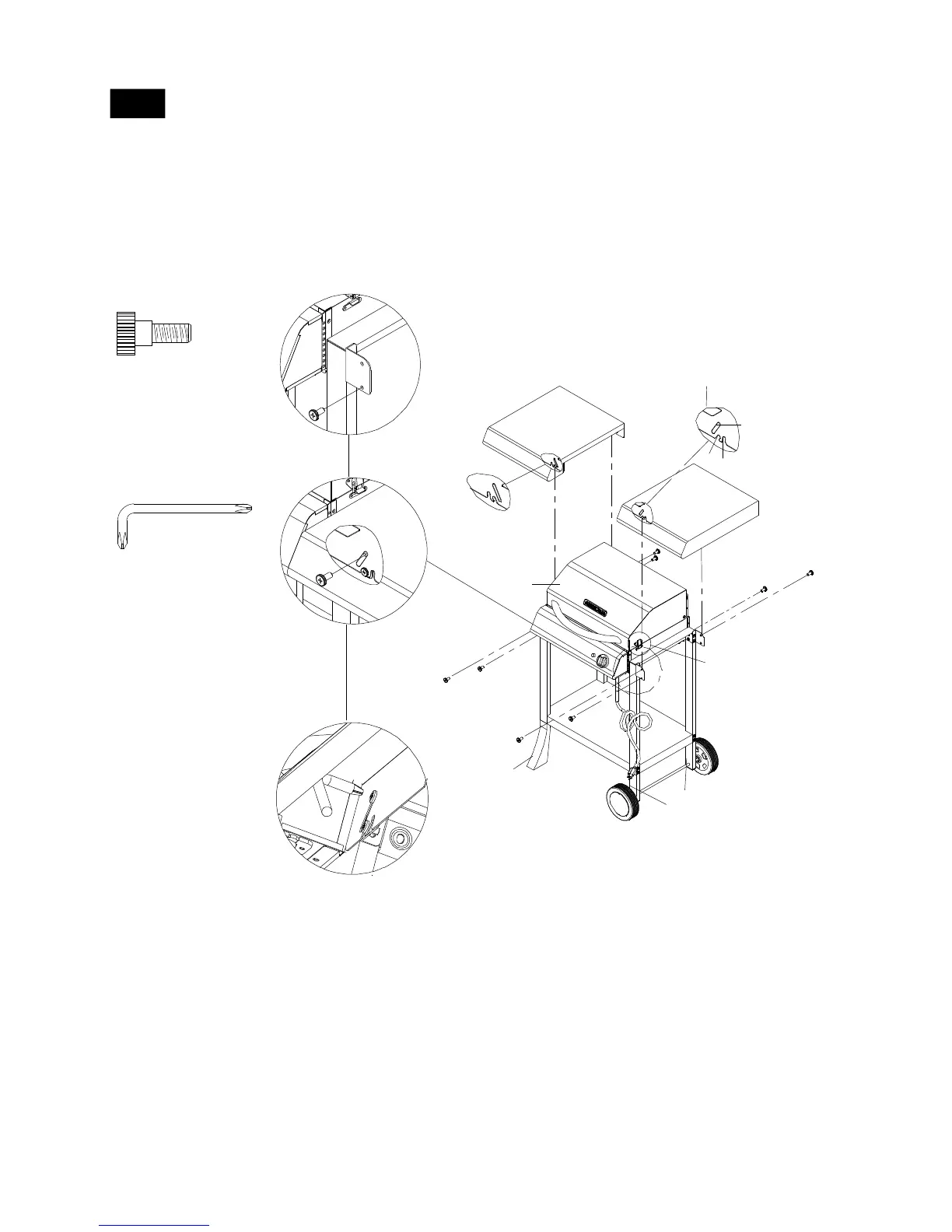From the underside of the Side Shelf, insert one Pattern Head Screw