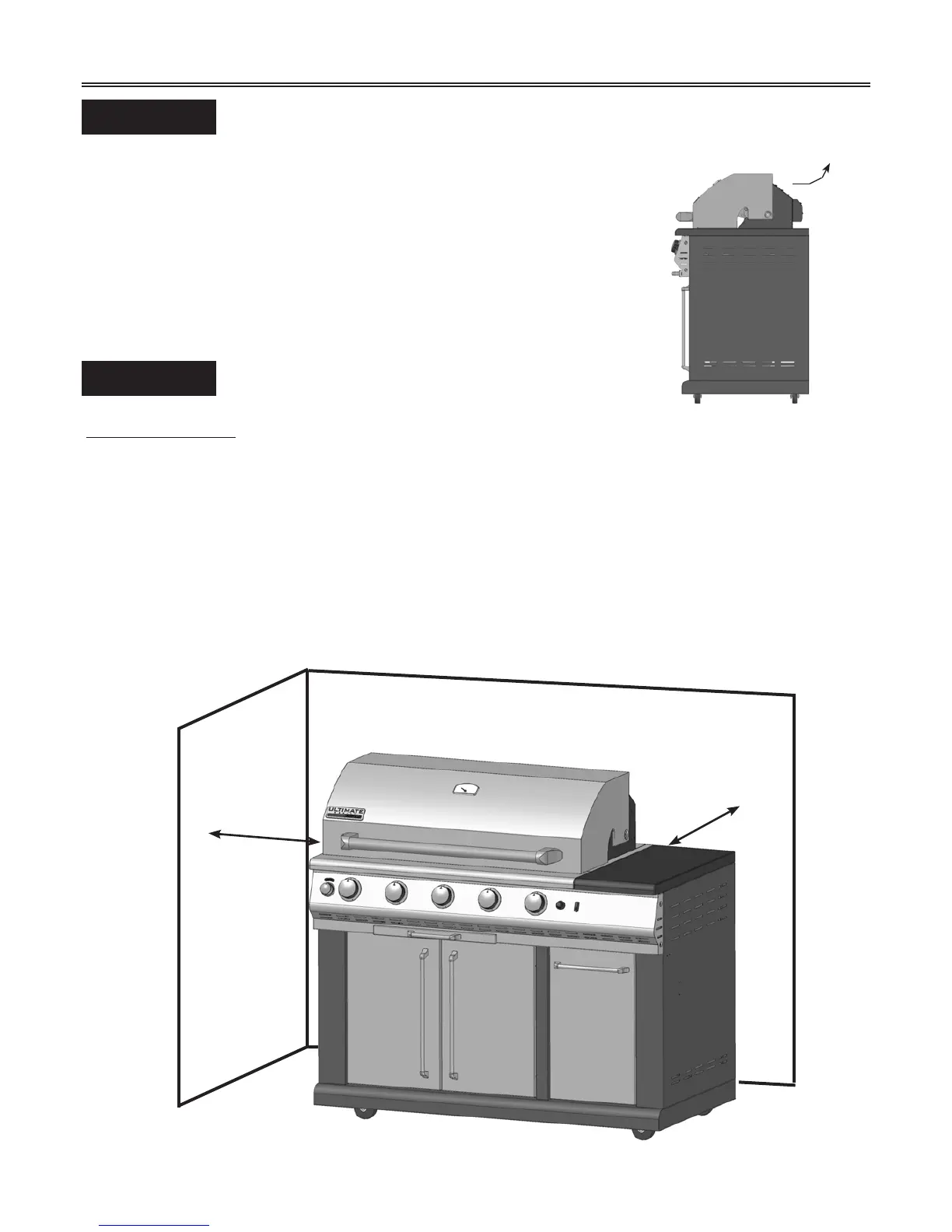 Do not use the grill in garages, breezeways, sheds or any enclosed area. Never operate the grill