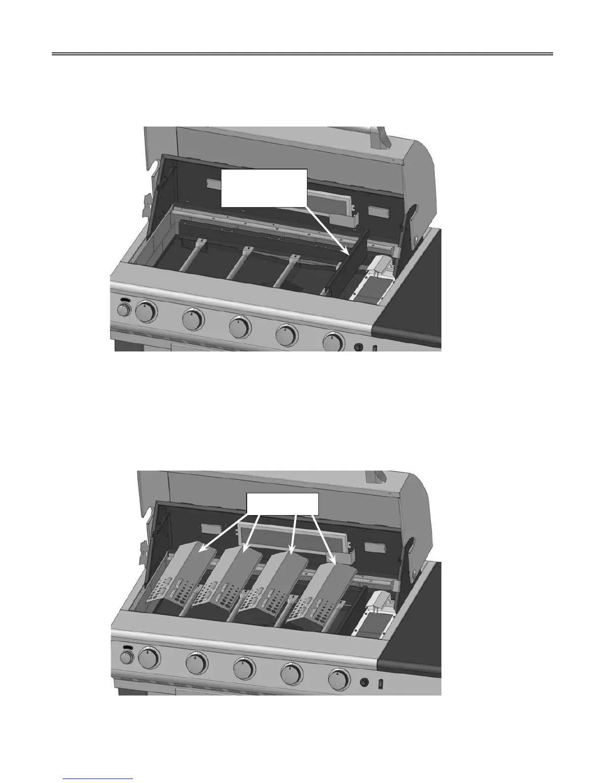 - Place the Searing Burner Heat Shield in position as shown.