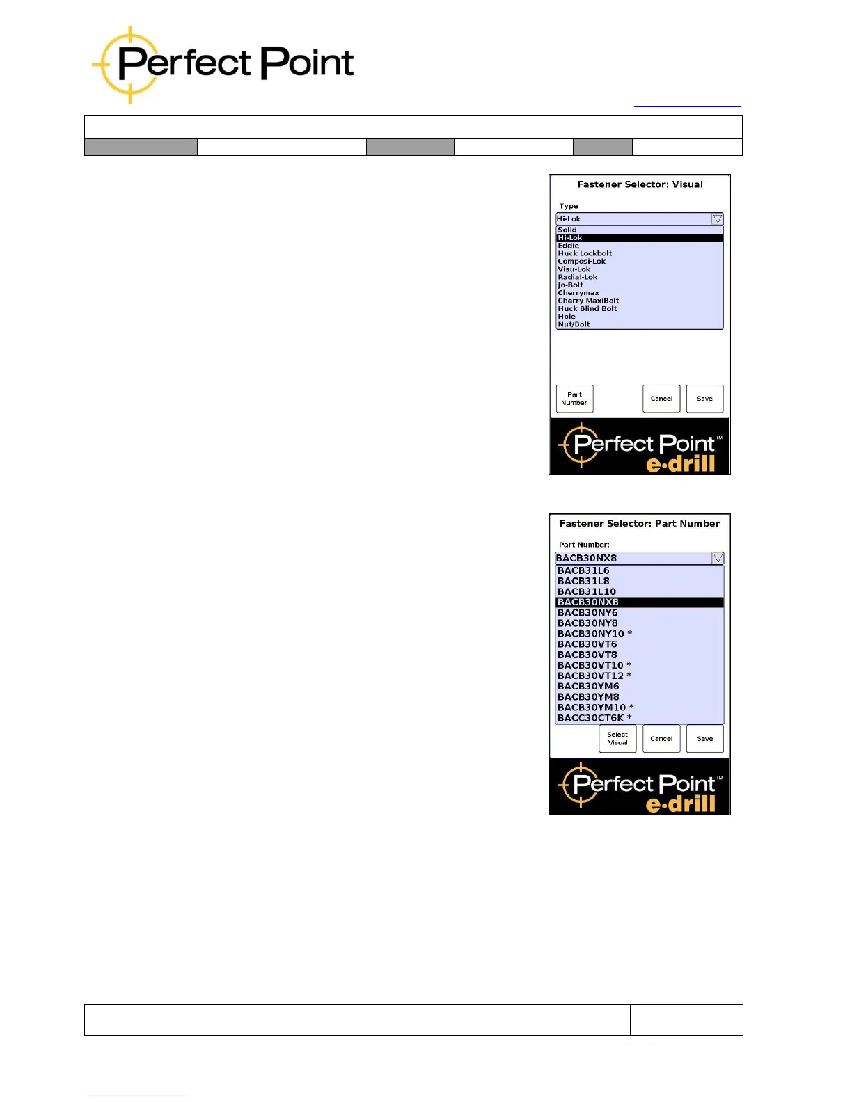 Fastener Visual Selector Screen –