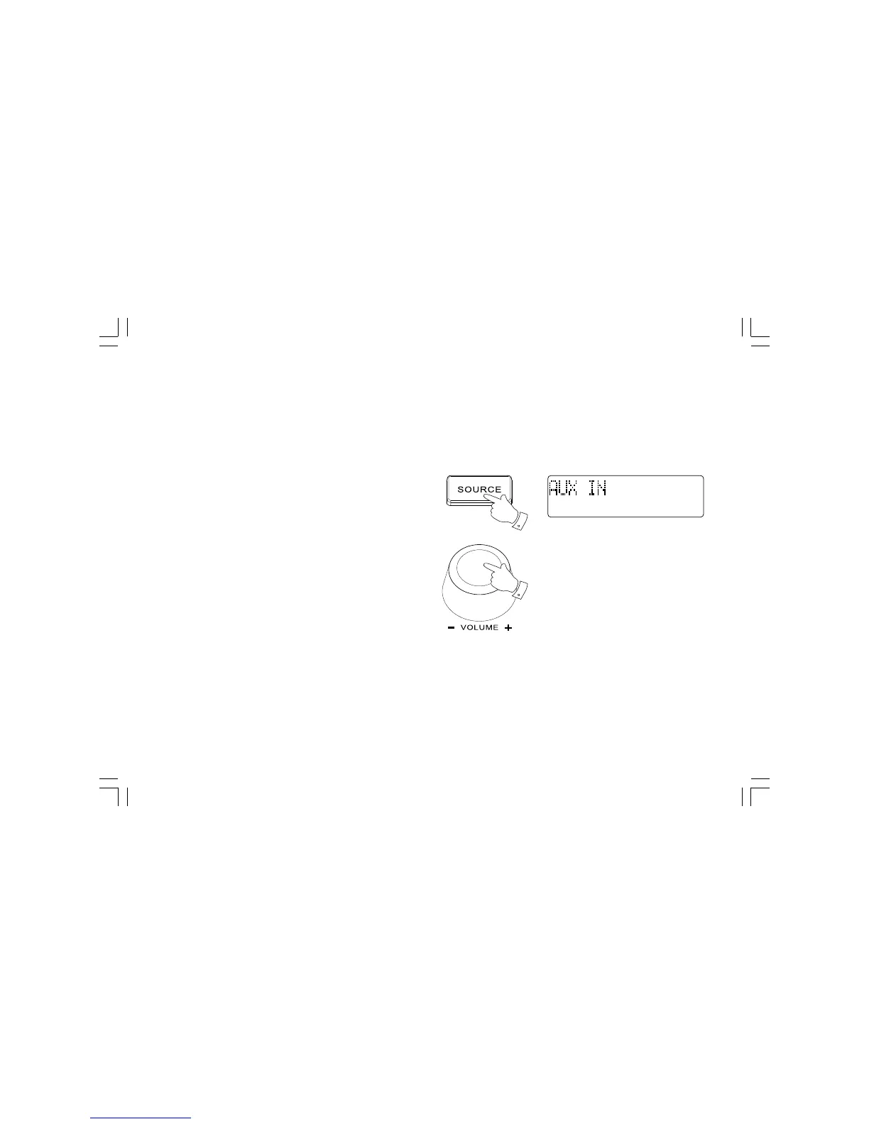2. Druk op de SOURCE-knop om AUX-invoer te selecteren. Het display