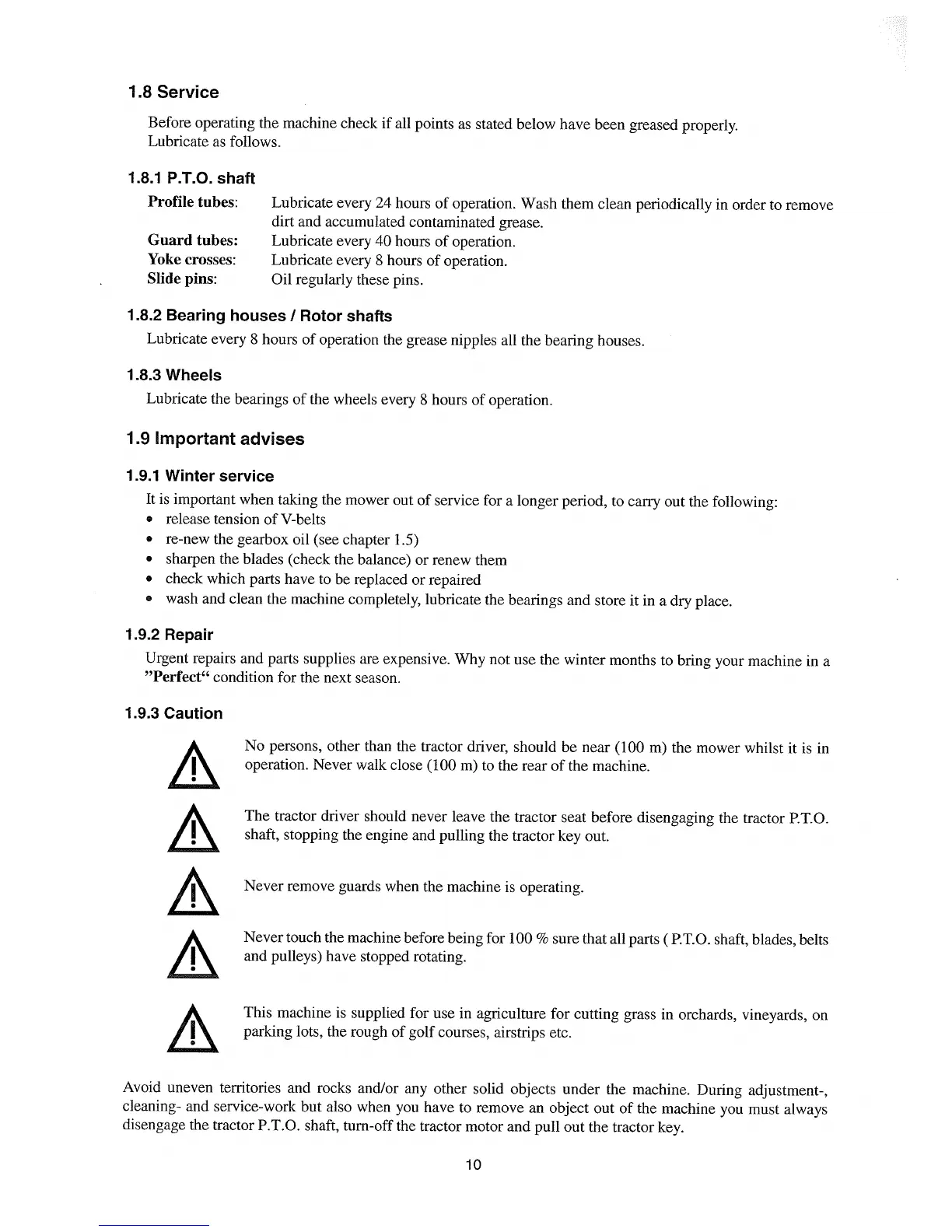 Perfect DR - Service Procedures; P.T.O. Shaft Service; Bearing Houses; Rotor Shafts Service; Wheel Service