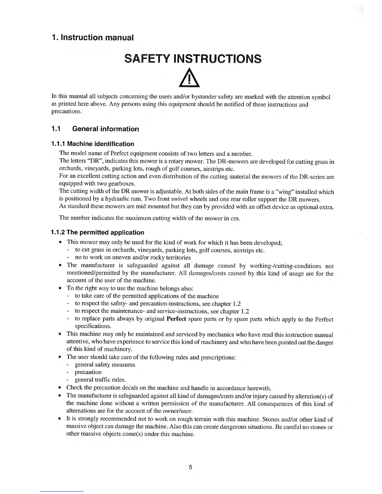 Perfect DR - Instruction Manual; SAFETY INSTRUCTIONS; General Information; Permitted Application