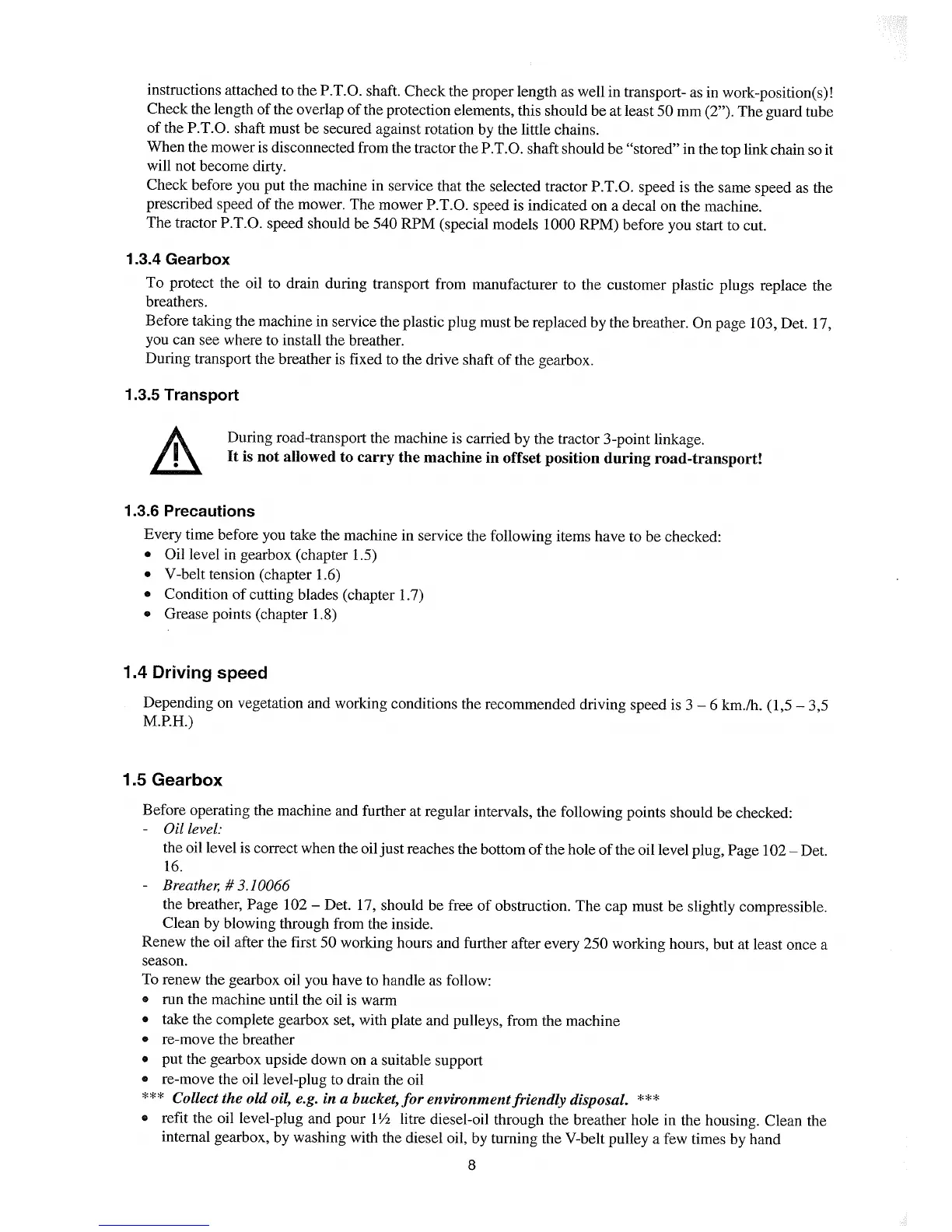 Perfect DR - Driving Speed; Gearbox Maintenance
