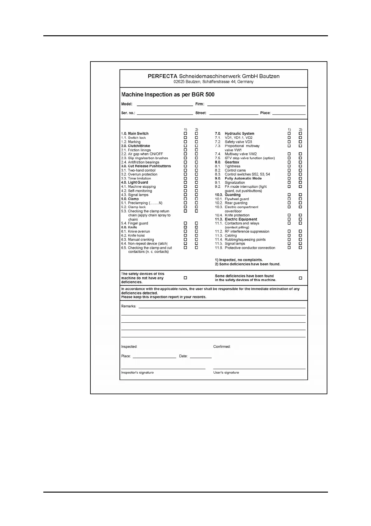 PERFECTA Schneidemaschinenwerk GmbH  D-02625 Bautzen  Schäfferstr. 44  Tel.: +49-3591-556-131 to -133  Fax: +49 3591-556-139