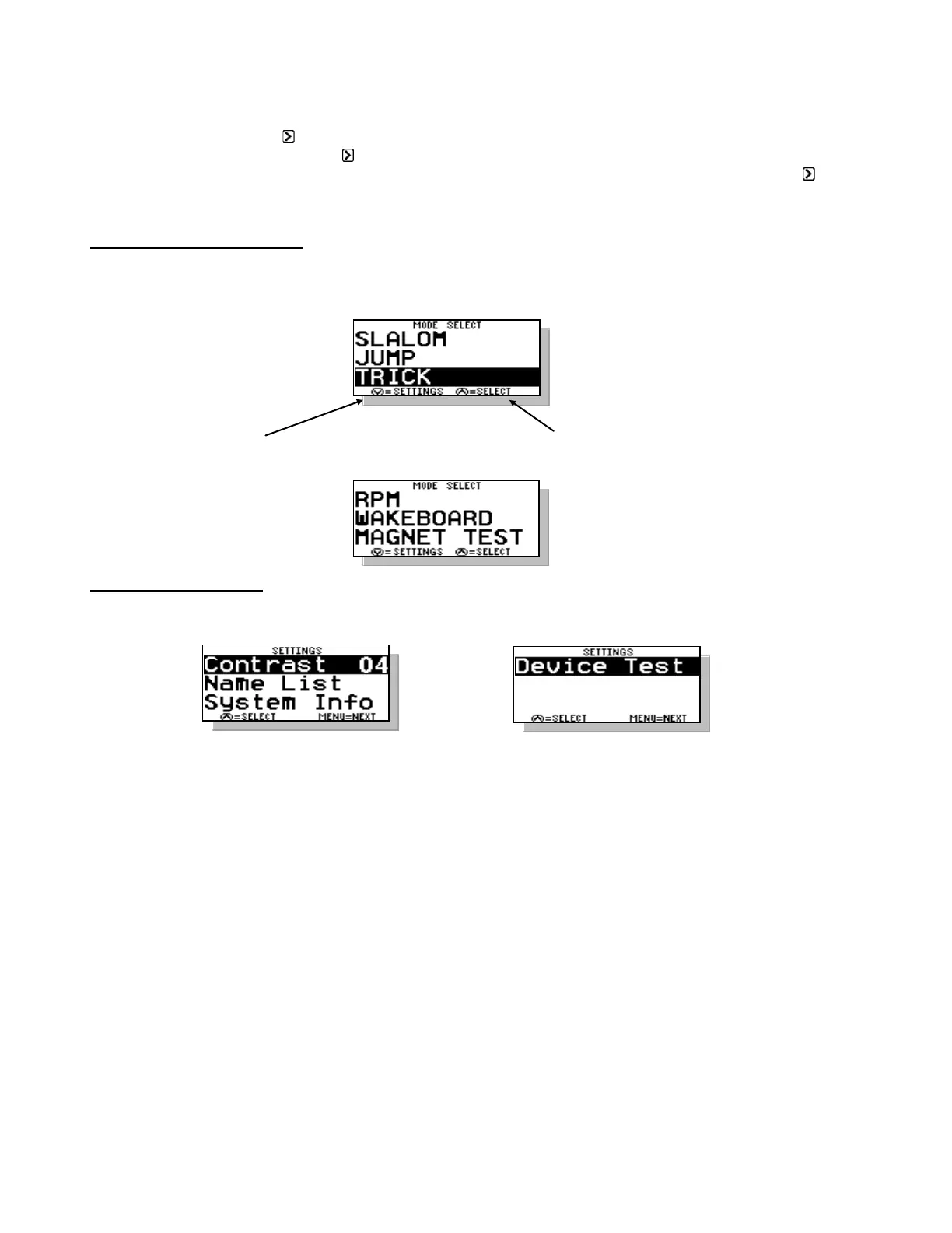 the mode; the specifics of these screens will be covered within each mode description. Pressing the UP key on the brings