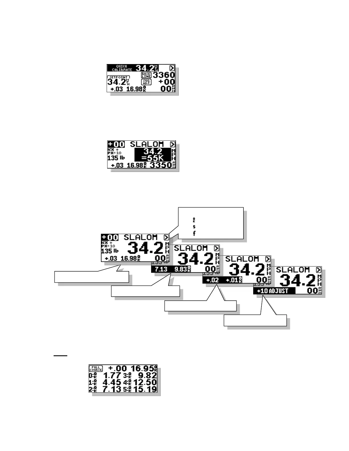 adjustment based on the times. These screens will scroll automatically at the end of each pass. The result of this