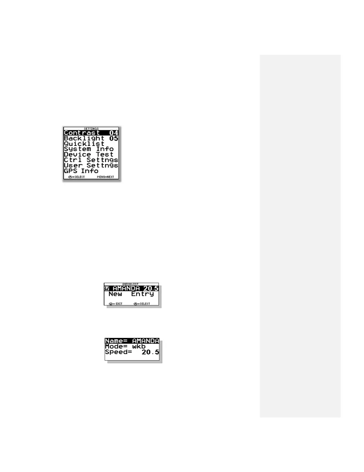 highlighted or by going into the SUBMENU and selecting the Name List. Once in the Name