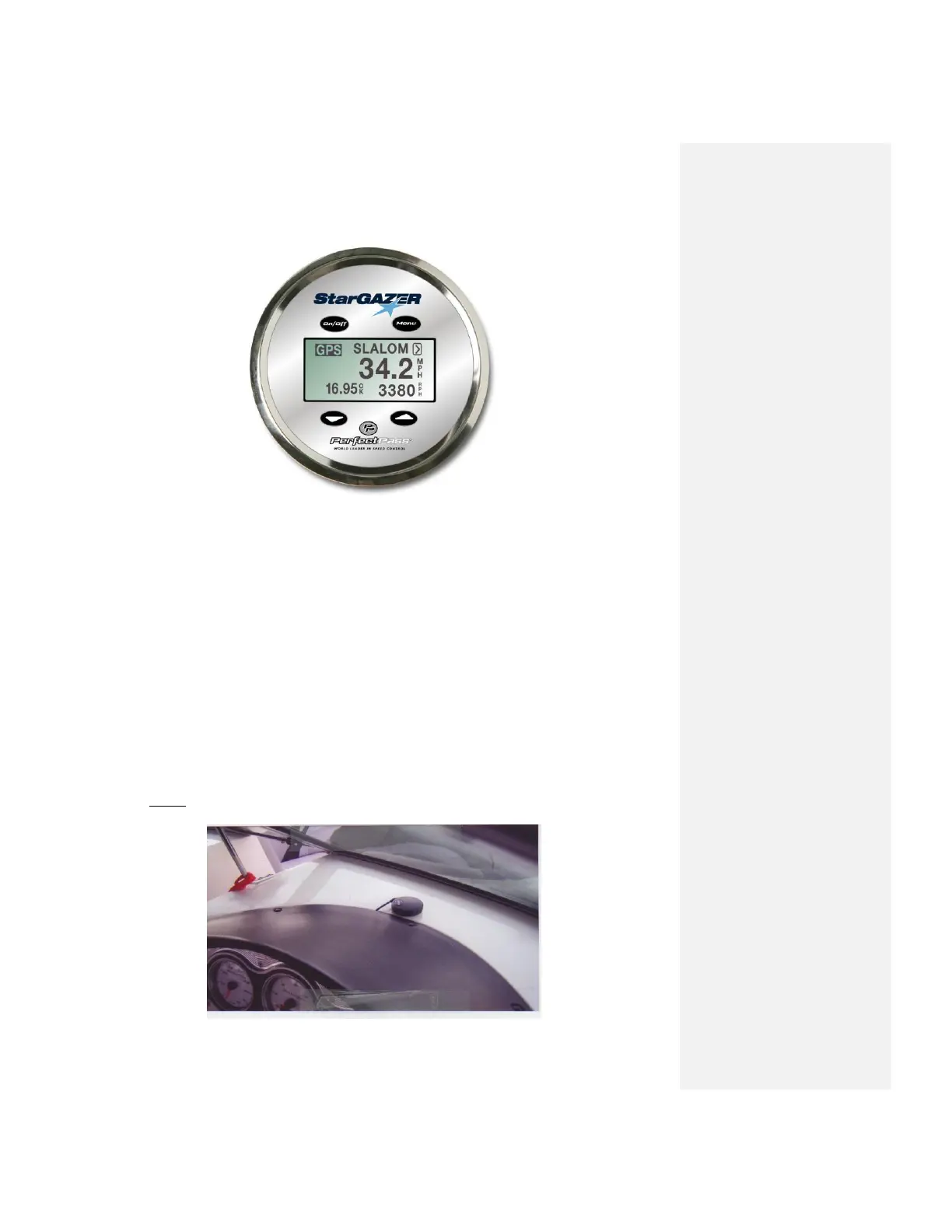 Installation: The GPS Receiver can be installed on the dash board looking up through the wind
