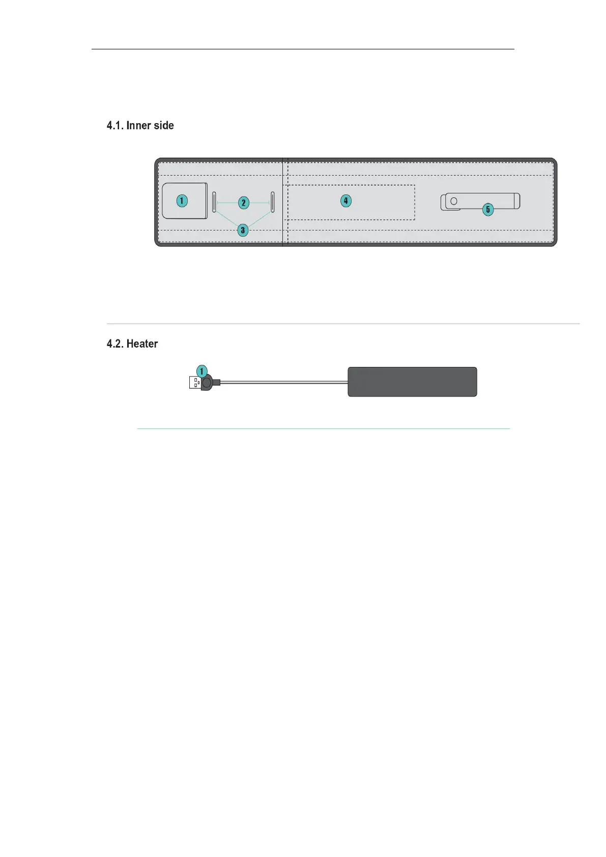 1. Power bank pocket 2. Cord hole 3. Cord insertion holes