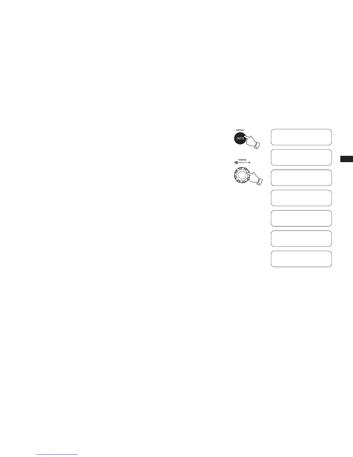 1. Lorsque votre radio est allumée, presser et maintenir appuyée la touche Info/Menu pour