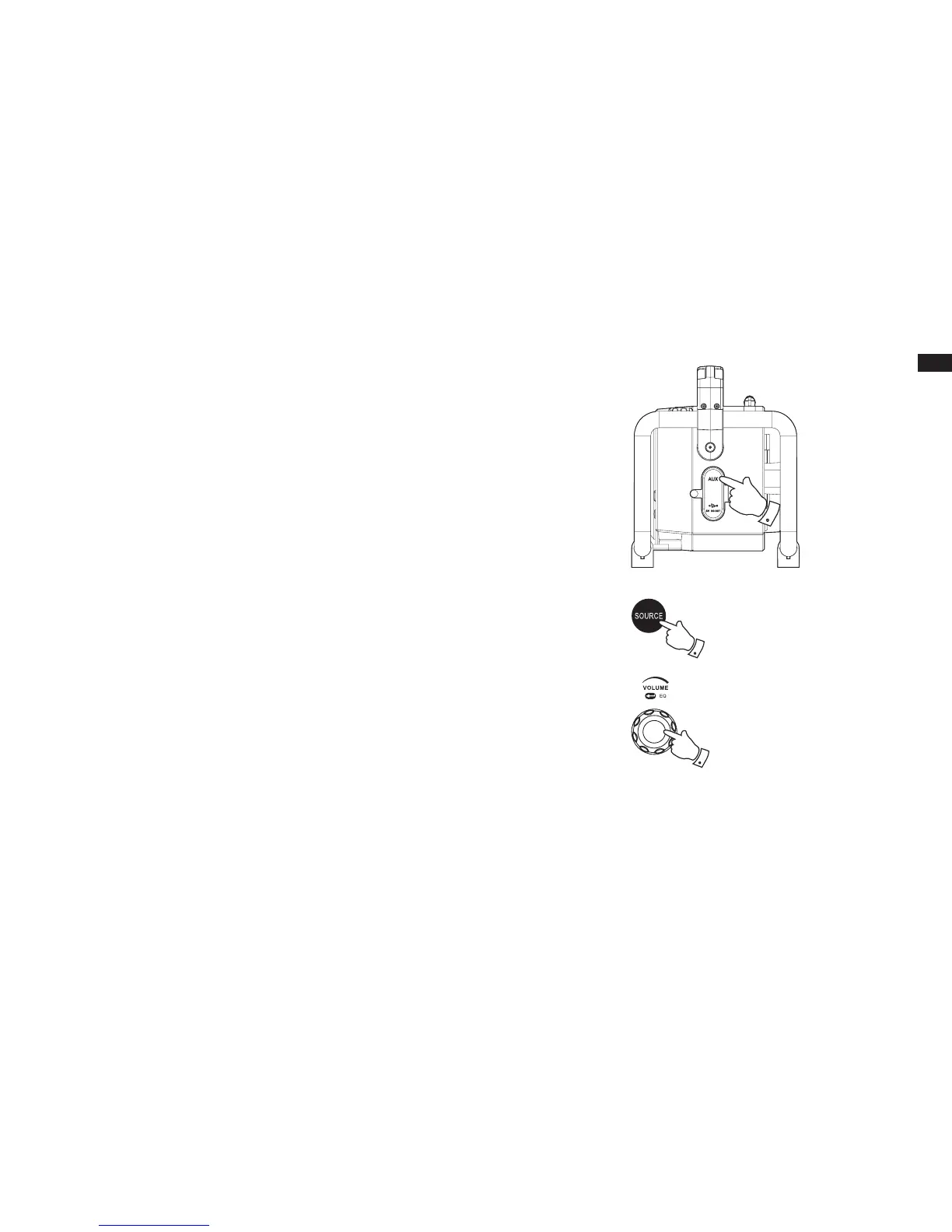 1. Connect a stereo or mono audio source (like CD walkman or MP3 player) to the Aux In socket,