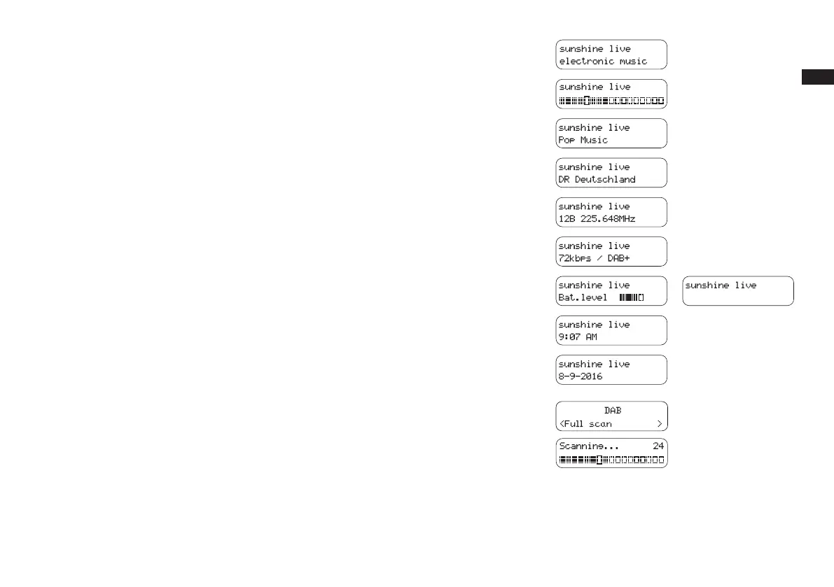 1. To carry out a full scan of the entire DAB Band III frequencies press and hold the Info/Menu button.