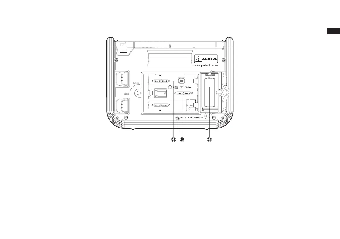 PERFECTPRO DAB+MATE - Device Features; Storage compartment; Battery type switch; Software upgrade port