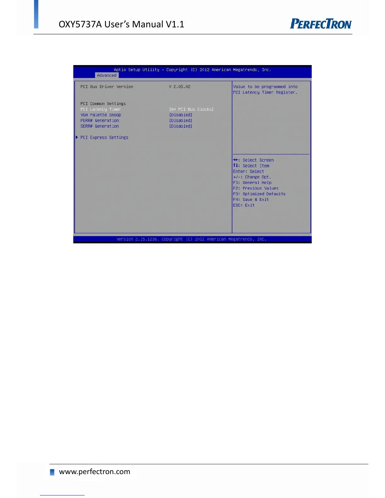 PCI, PCI-X and PCI Express settings.