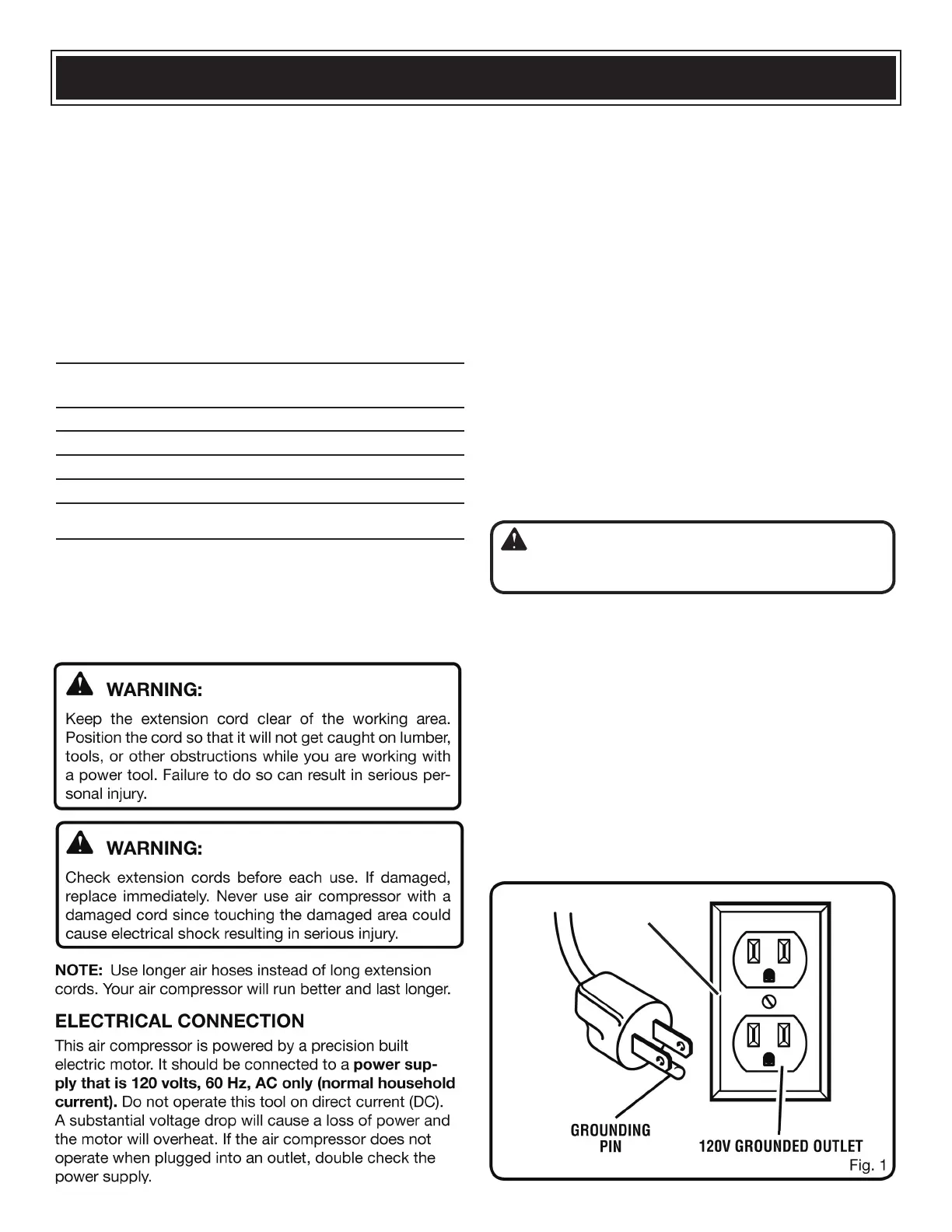air compressor’s plug. When using the air compressor at