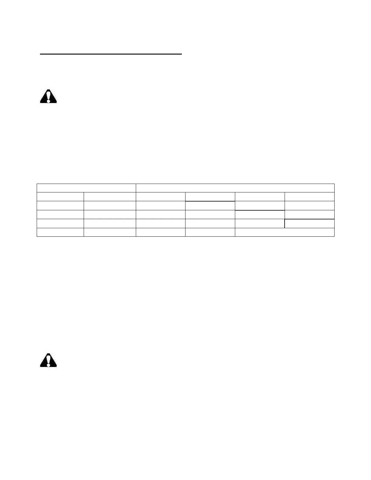 in line voltage resulting in loss of power and overheating. The table below shows the correct size to
