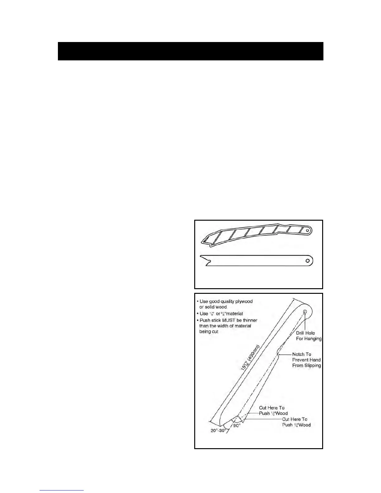 • Push sticks are devices used for safely pushing a workpiece