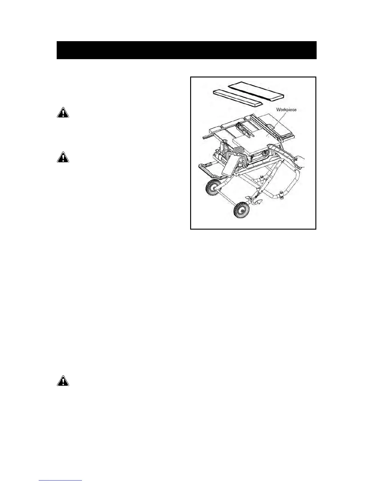• If ripping a larger piece, place a support the same height as the table surface behind the saw for the cut work.