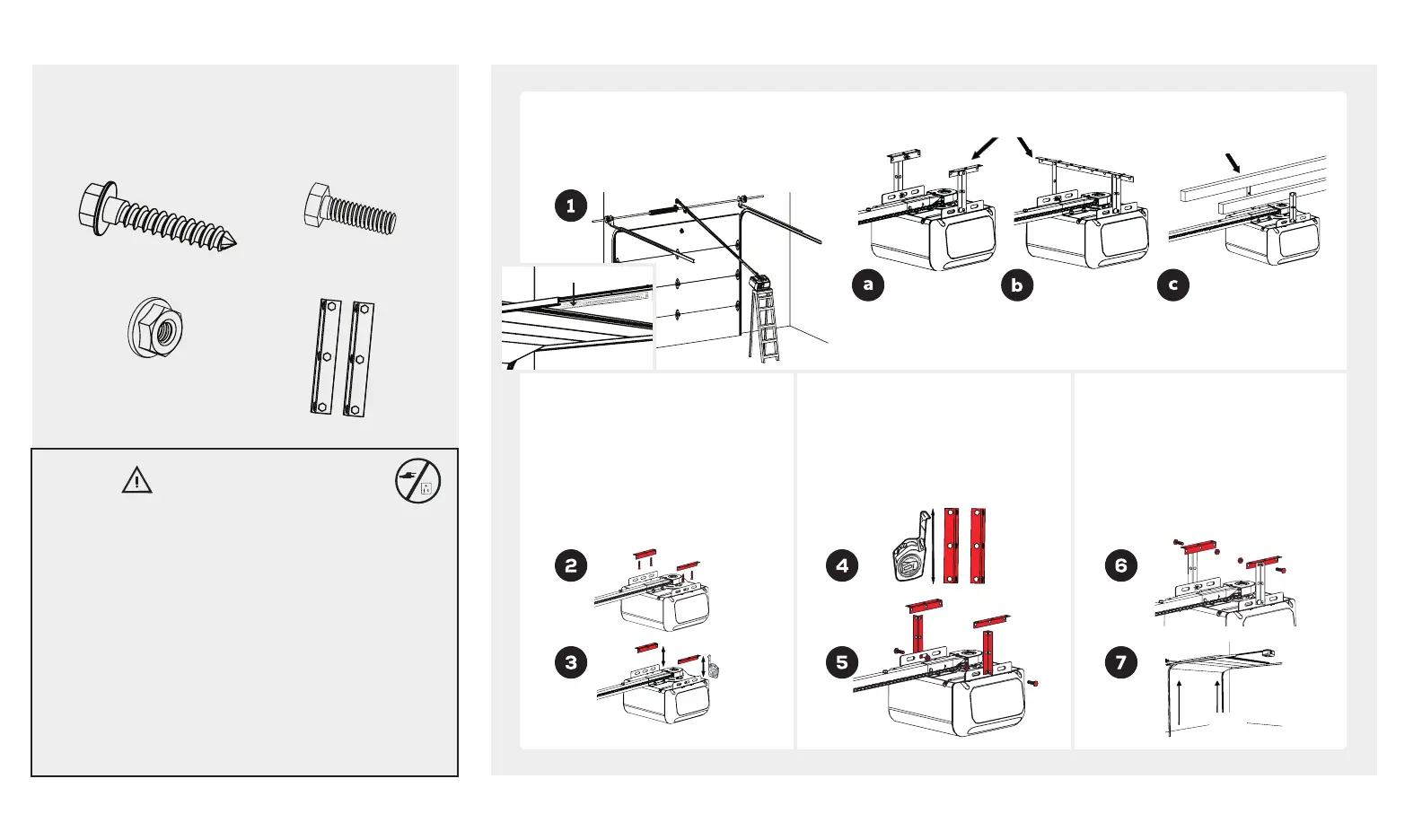 • Fasten the opener SECURELY to STRUCTURAL