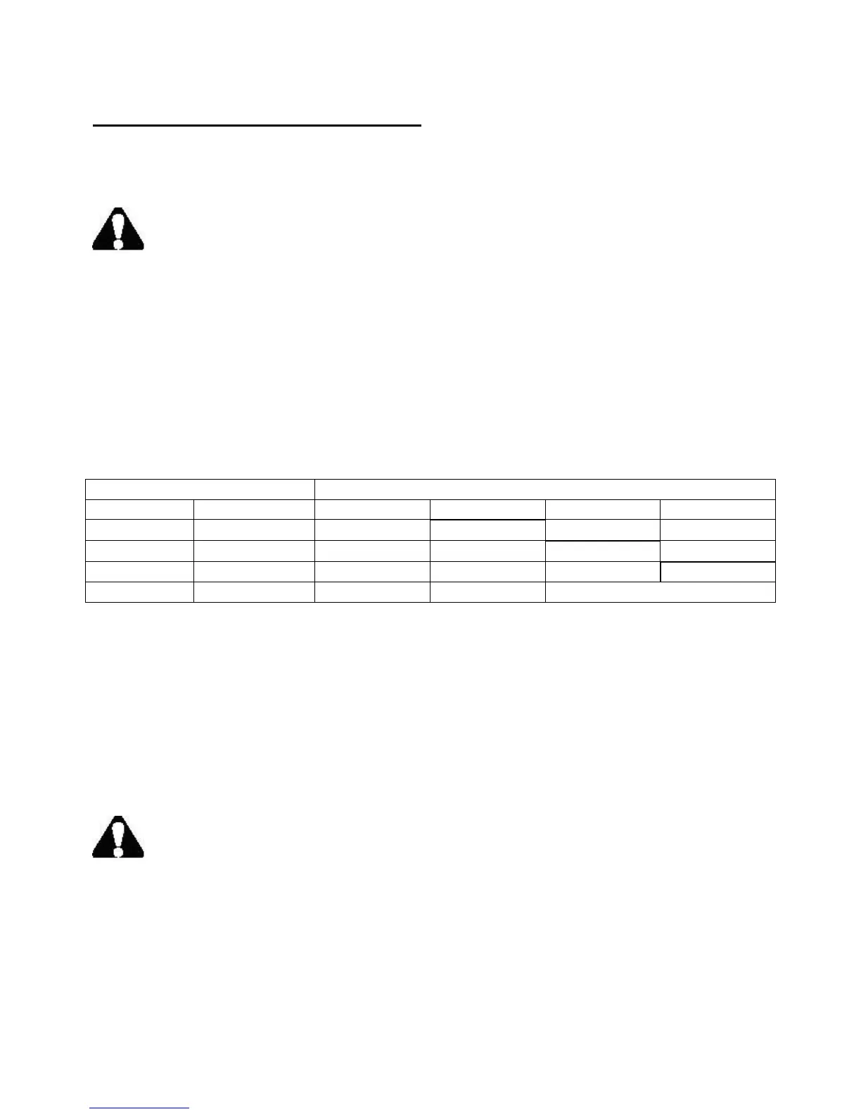 in line voltage resulting in loss of power and overheating. The table below shows the correct size to