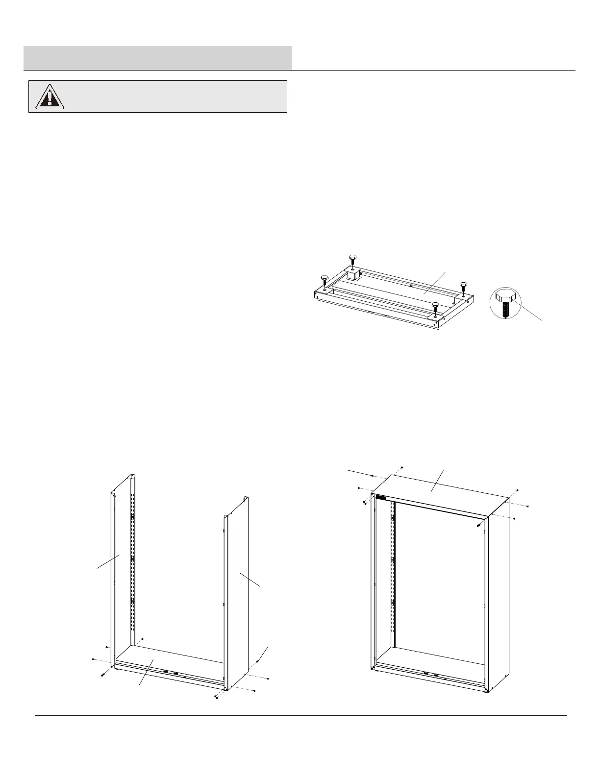 To assure the squareness of the unit, do not fully tighten the screws until the cabinet is fully assembled and level.