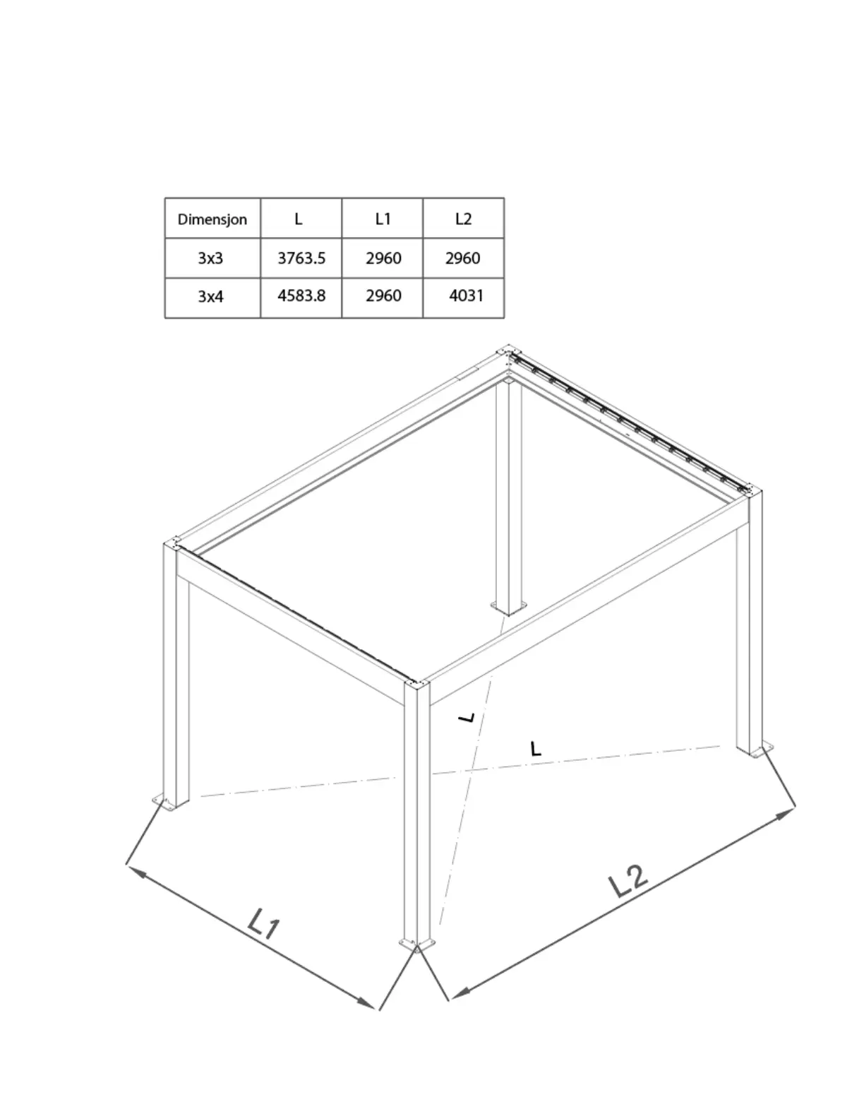 overens med lengde, bredde og diagonal. Følg tabellen under.