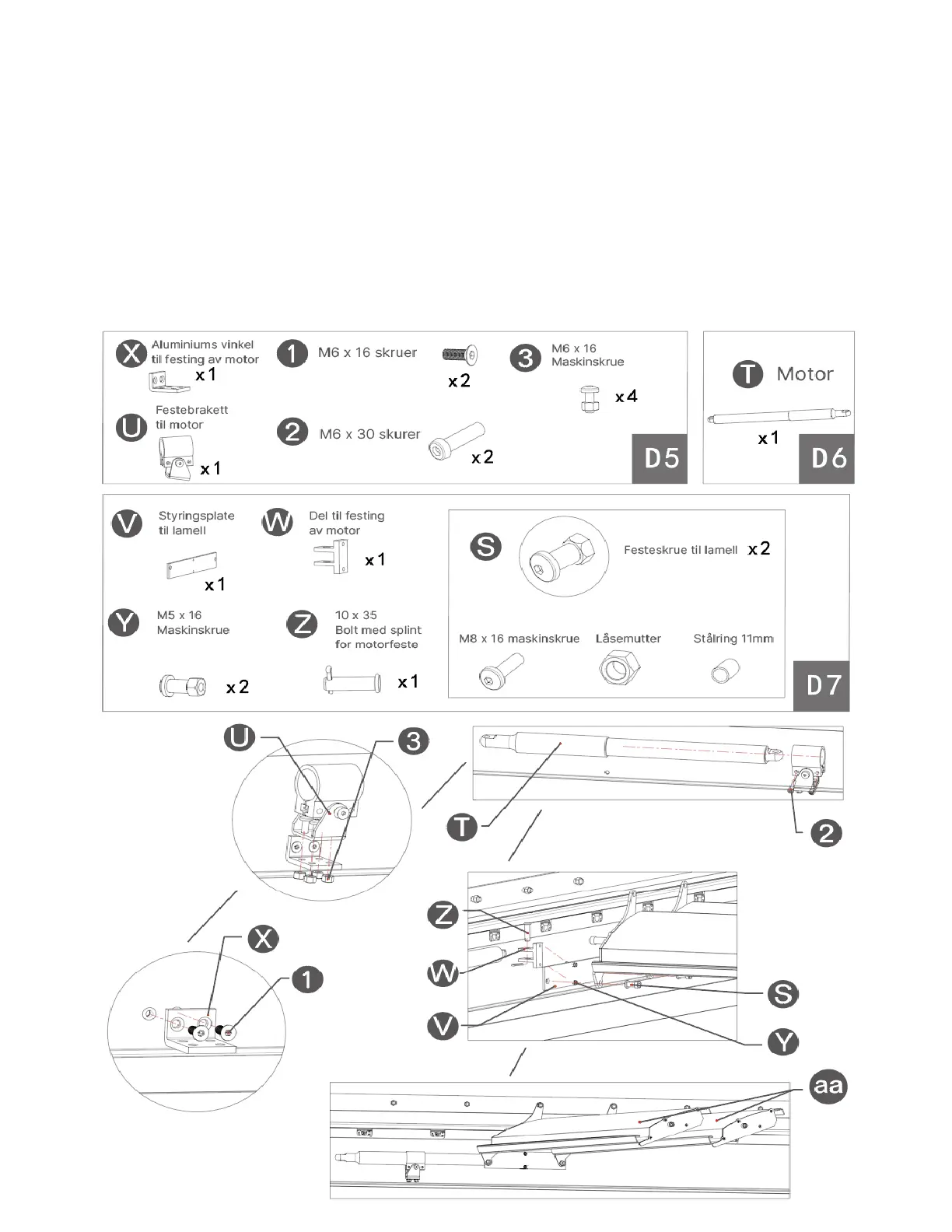 Monter lamellene (aa) til motoren Ⓣ med styringsplaten Ⓥ. Fest med