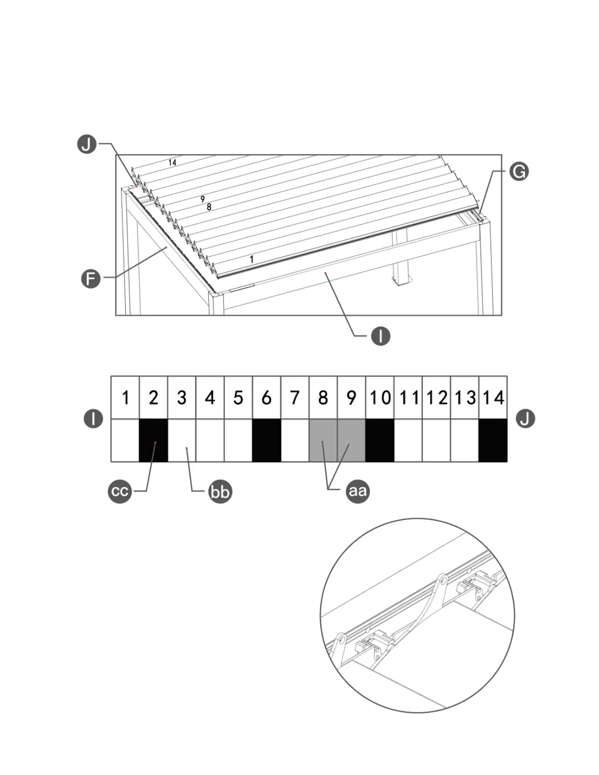 Trinn 13 Monter de resterende lamellene i rekkefølgen slik tabellen