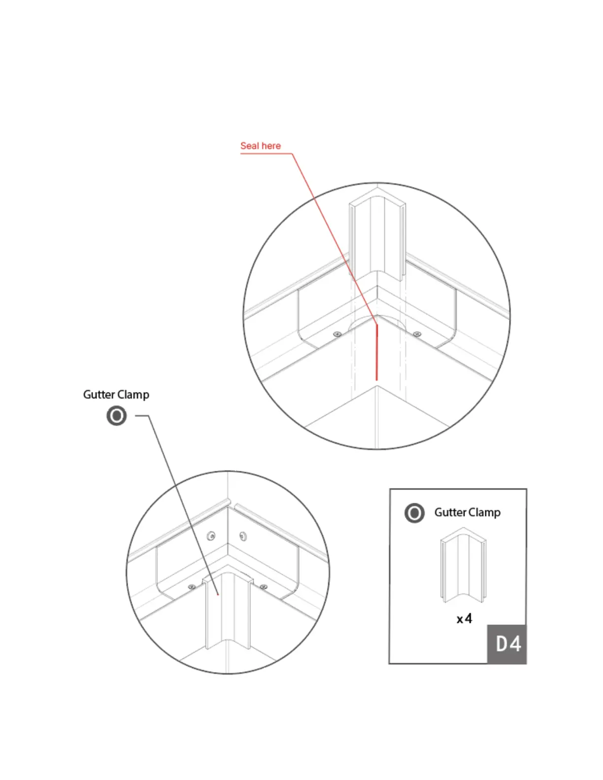 Step 8 Install the gutter clamps Ⓞ in all corners.
