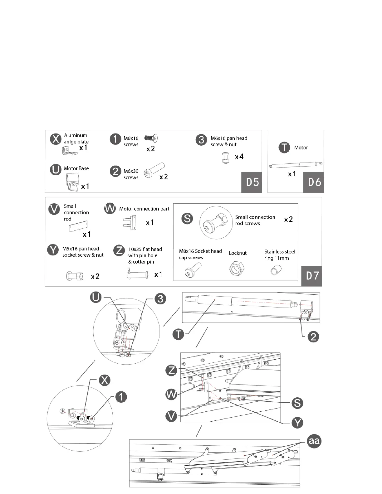 (aa) louvers to the motor with the small connection rod Ⓥ. Fasten