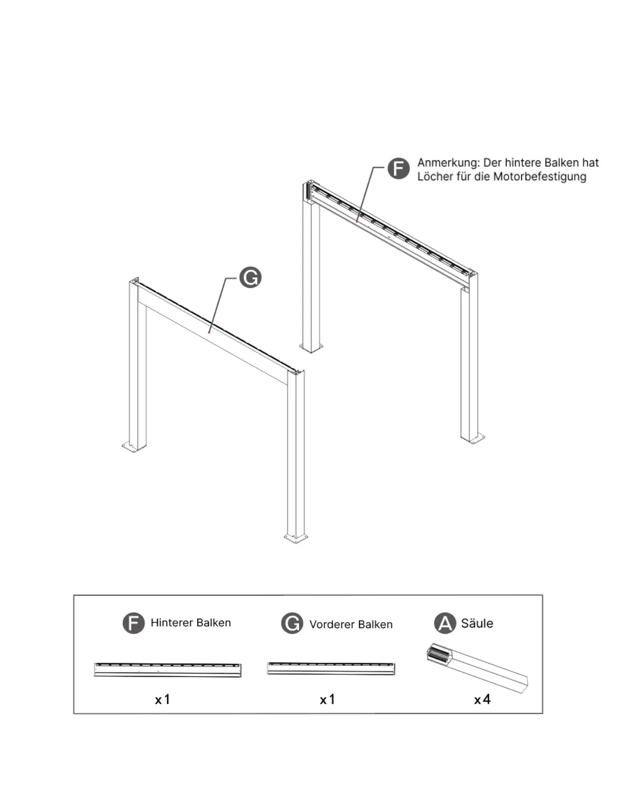 Schritt 3 Installieren Sie den Balken Ⓖ an den Säulen Ⓐ mit den