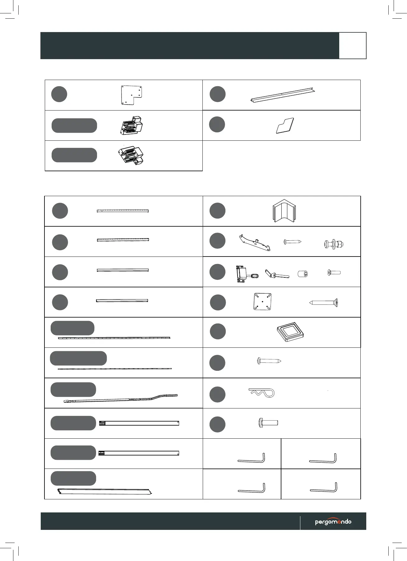 Diese Teile werden mit Ihrer Pergola geliefert und sind in dieser Anleitung nur zur
